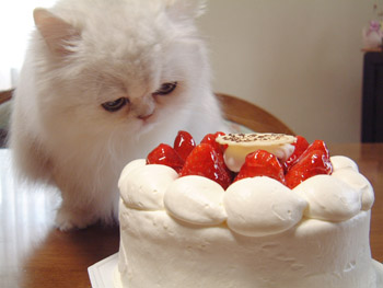 ![]() 2001年3月2日。 セリちゃんは無事に1歳のお誕生日を迎えました。 苺いっぱいのバースデーケーキです。 本当にいっぱい苺が入ってるんですよ。 セリちゃんのイメージにぴったりでしょう? これからも元気で長生きしてねの気持ちを 沢山こめてみました。 |