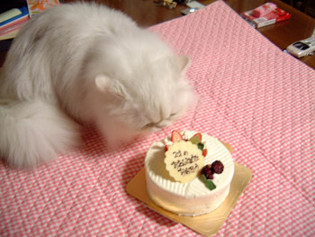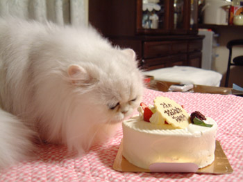 ![]() セリちゃん、気に入ったみたいです。 ぱくぱくペロペロ食べてました(^^; 甘い物が大好きなセリちゃんです。 でも、沢山食べると体悪いので少しだけ・・・。 生クリームがとても美味しいケーキ屋さんなので くどくならずに食べられます。 |