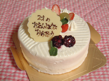 ![]() セリちゃんの2歳のお祝いです。 いつもと同じ、「ル・スリジェ・ダムール」のケーキ。 少し大人っぽい物を選んでみました。 可愛いショートケーキでしょう? 中は苺が丸ごと入っていて、すごーーく 美味しかったです。 セリちゃんのを私達も分けてもらいました♪ |