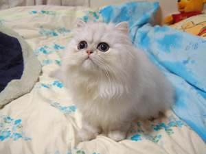 | セリちゃんは、いつもうるるんしていますが 実はエンちゃんもなのです。 ちょっとこの顔、うるるんしているでしょう?? 最近ますますふわふわになってきましたよ。 足がもこもこしてて、可愛いんです。 |