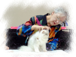 手の動きがリアルに撮れました。 このジャッジはとてもハンドリングが 上手で、セリちゃんもいい子になって とっても可愛いお顔を見せてくれました。 猫を見る目が優しくて、安心して 審査を見ることが出来ました。 でもね、始めの方でちょっとシャーって 言っちゃいました。 セリちゃん、もうちょっとこっちを 見てくれないかな〜〜。 |