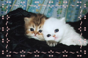 |  小さいセリちゃま  私の家に来る前のセリちゃん。 ブリーダーさんから頂いた写真の一枚です。 殆ど同じ時期に生まれたローラちゃんと。 今でもこんな雰囲気です。 |